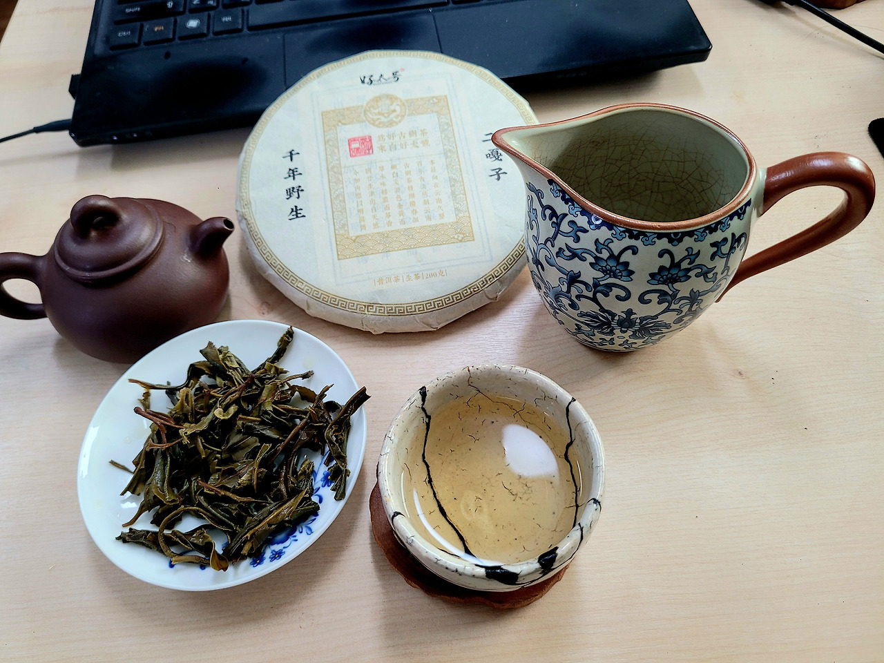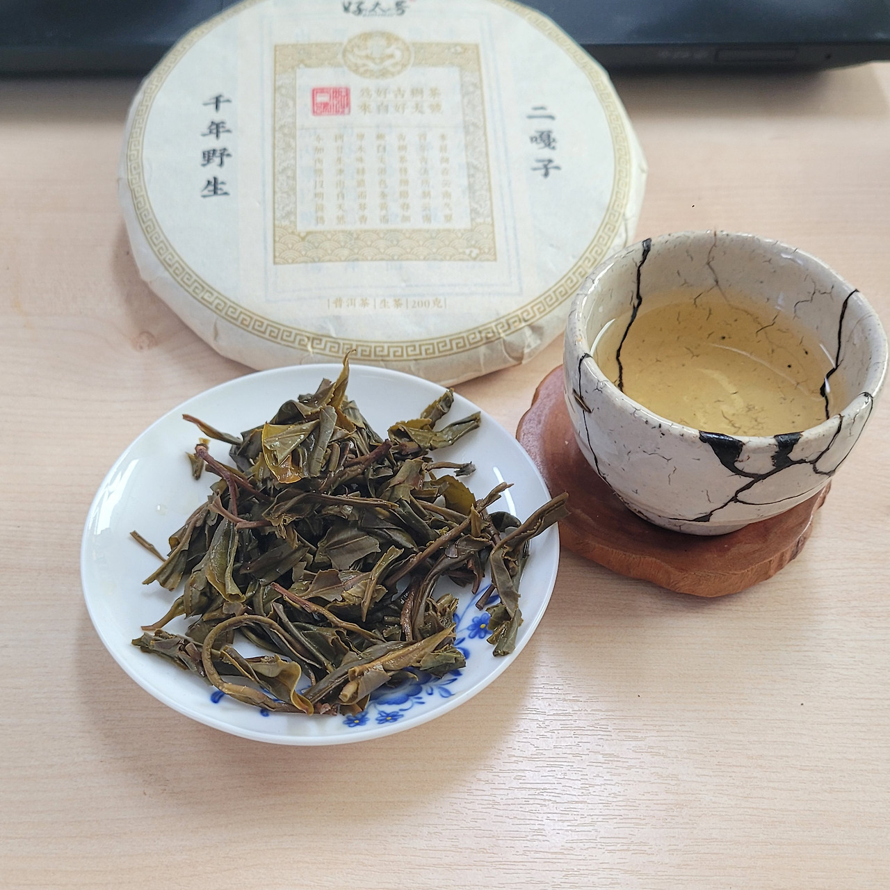 지난번 수령 1200년 백앵산 얼가즈 야생차를 보내준 다우가 이번에는 수령 2000년 차를 보내왔다. 2000년 된 차나무라니 차를 받아 포장지를 풀어서 병면을 보면서 합장하고 머리부터 숙여 예를 표했다. 내가 어떤 공덕을 쌓아 2000년 나이의 차나무 잎으로 만든 차를 마실 수 있게 되었을까? 보이차를 마시는 분 중에 수령 2000년 된 차나무와 인연을 맺을 수 있는 사람이 얼마나 될까?